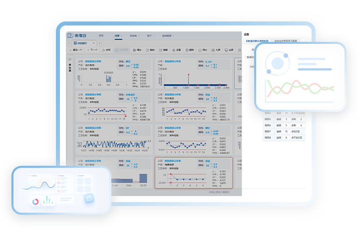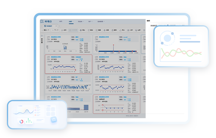一款专为先进制造企业打造的过程监控与质量管理工具,系统直连工业设备,自动采集产线数据并实时生成控制图(如X-Bar R图、P-NP图、C图、U图),替代传统人工记录与离线分析模式,大幅提升效率。当关键参数偏离预设范围时,系统将自动触发分级报警机制,帮助快速定位异常环节,缩短问题响应时间,降低不良品风险。同时,支持多维度分析,实时展示核心指标。