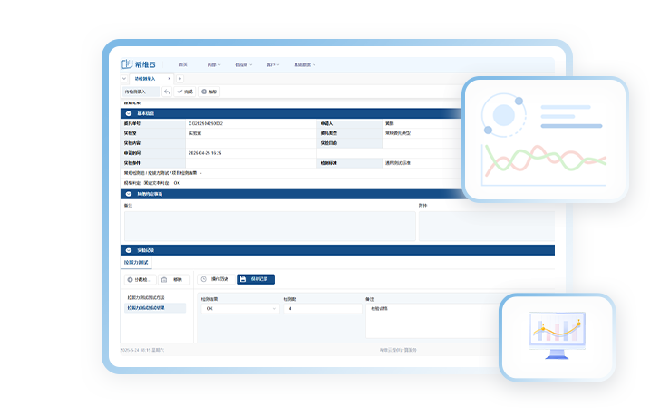 打造稳定且易于使用的实验室管理系统,实现检测流程和实验室管理体系的数字化管理,原始记录和报告自动生成、在线审批、实验报告自动推送。